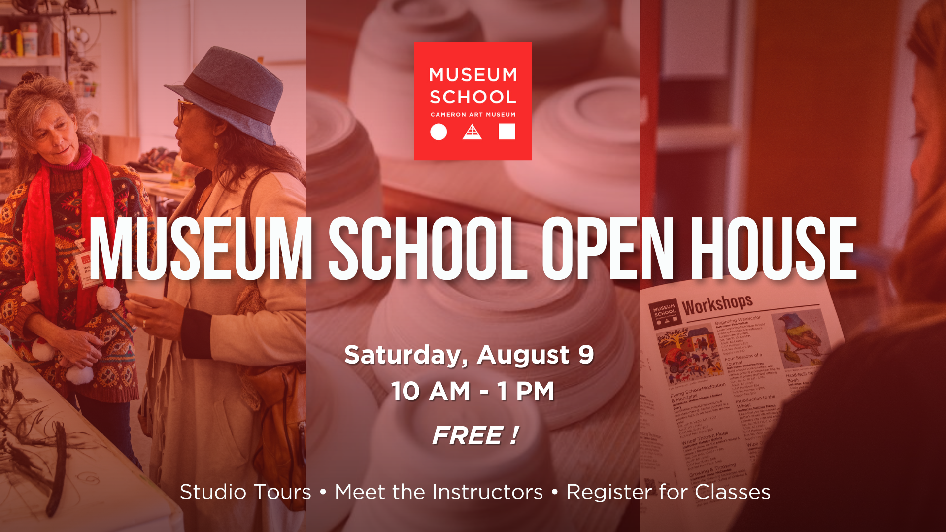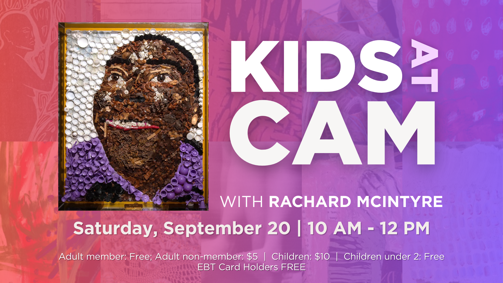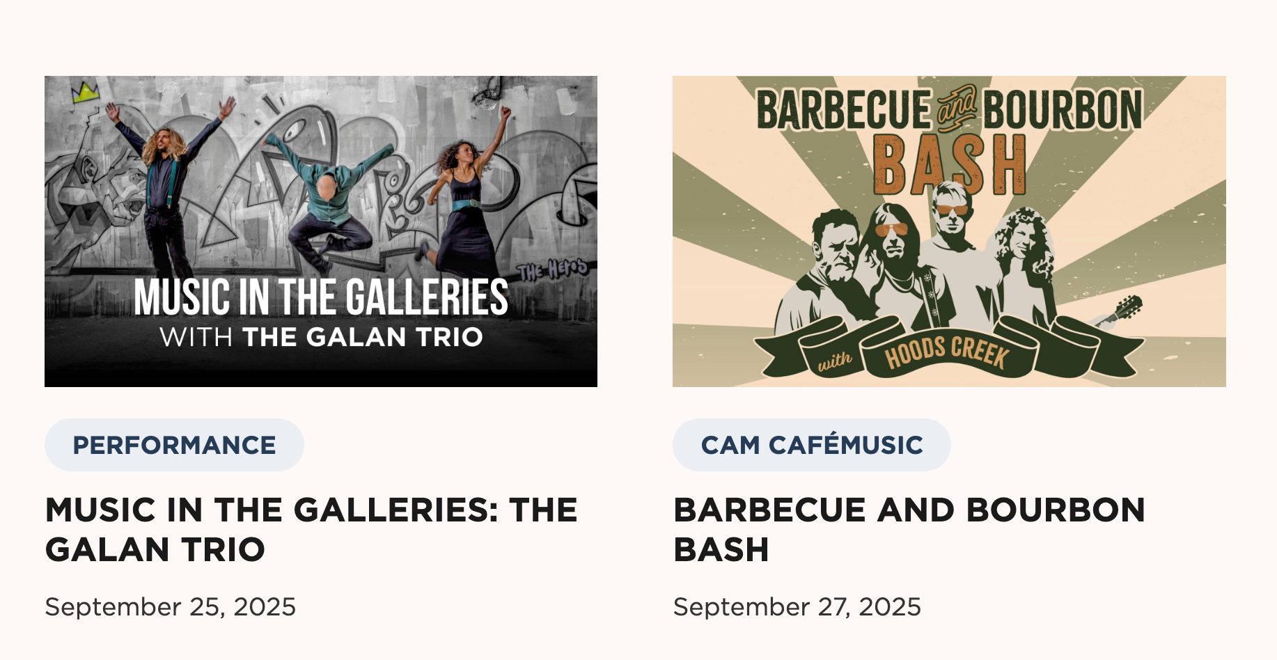 In addition to creating weekly visitor screens, I also designed web graphics for the events tab on the Cameron Art Museum website. This process taught me how to adapt informational screen layouts into engaging, attention-grabbing thumbnails that worked effectively in a digital format.