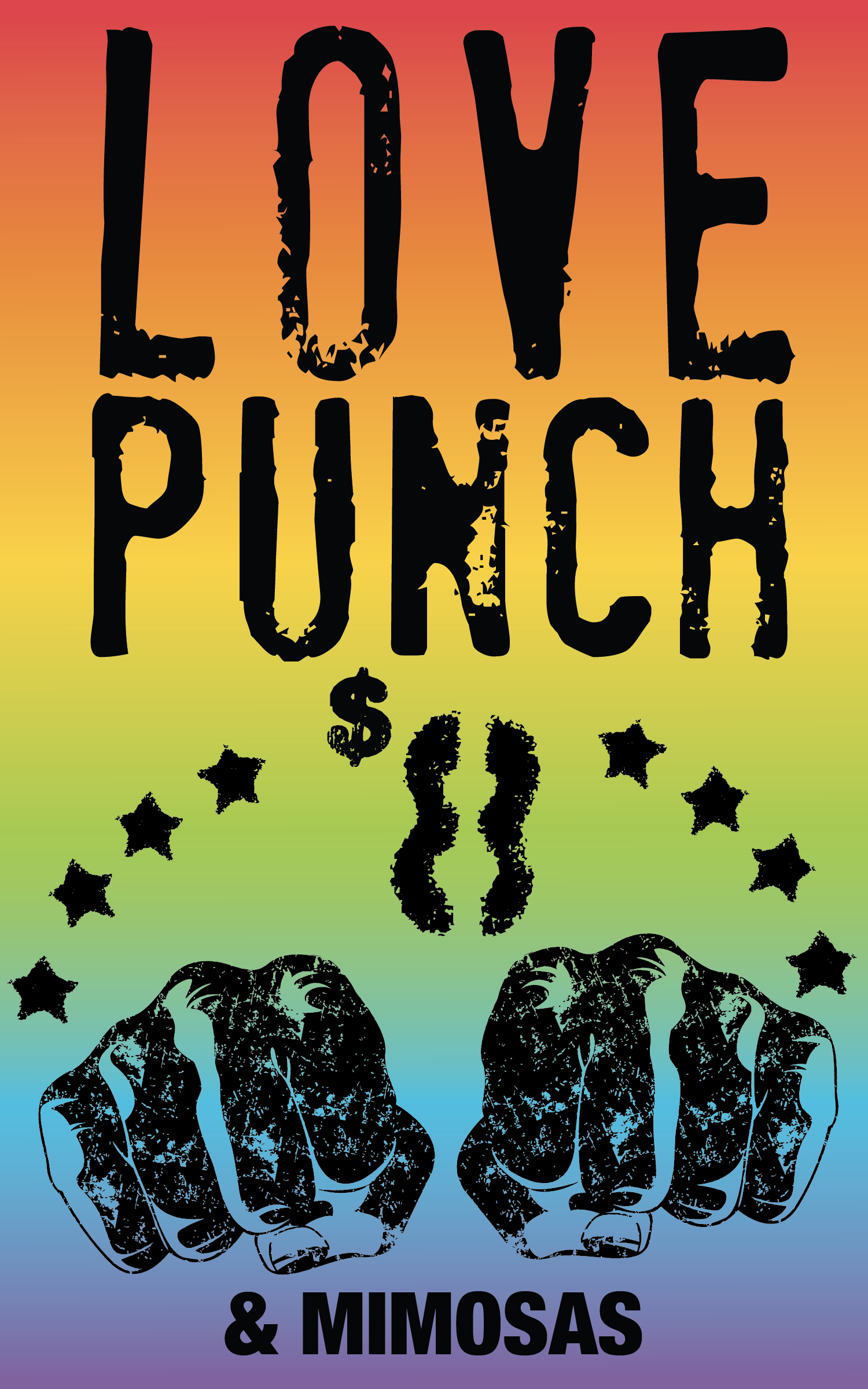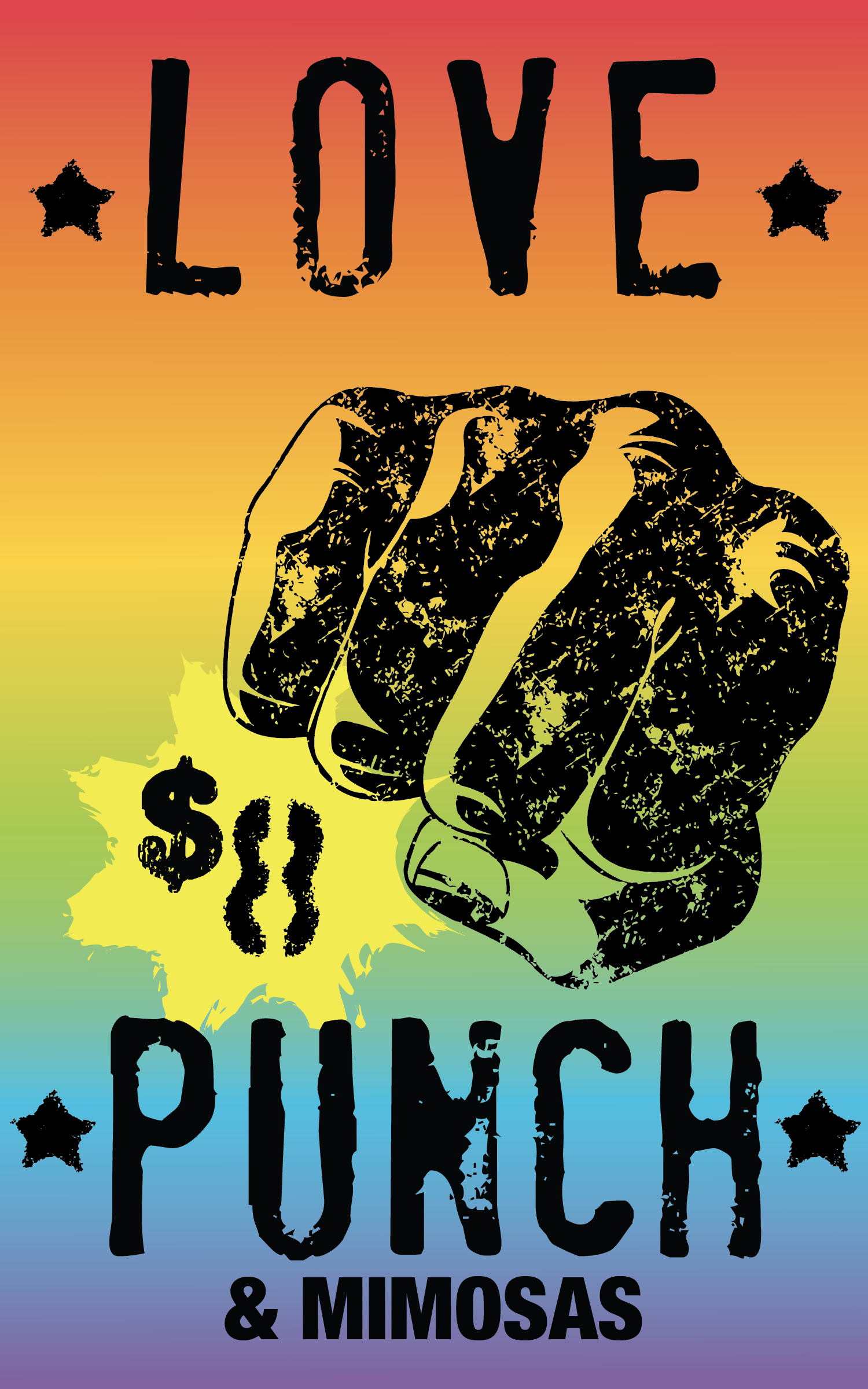 For the 2025 Love Dance event, I was tasked with revamping the “Love Punch” signs. Using Adobe Illustrator, I kept the same font and fist vector from the previous year’s design to maintain its original inspiration from Basquiat and Warhol’s boxing imagery. Because the event celebrates Pride, I chose to keep the rainbow color scheme while playing with movement, layering, and bold pop-art elements like stars and comic “pow” shapes. I created three different versions of the sign, all of which were printed and displayed at the event. Once finalized, I imported the Illustrator files into InDesign to properly format them for printing.